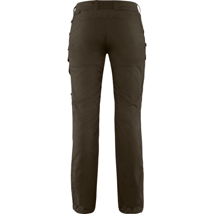 Durable trekking trousers with technical features, made from wind and water resistant G-1000 Eco. The model is based on our best-selling Vidda Pro but has improved ventilation options and a new, slightly slimmer fit that still has great freedom of movement. The buttoned strap adjustments at the leg endings can be removed and there are numerous practical pockets and details - such as a knife pocket on the right-hand leg and a loop for an axe on the side of the waist. NOTE: this model has regular leg length. Also available in a 2"/5cm shorter version (art.no. 89330S).