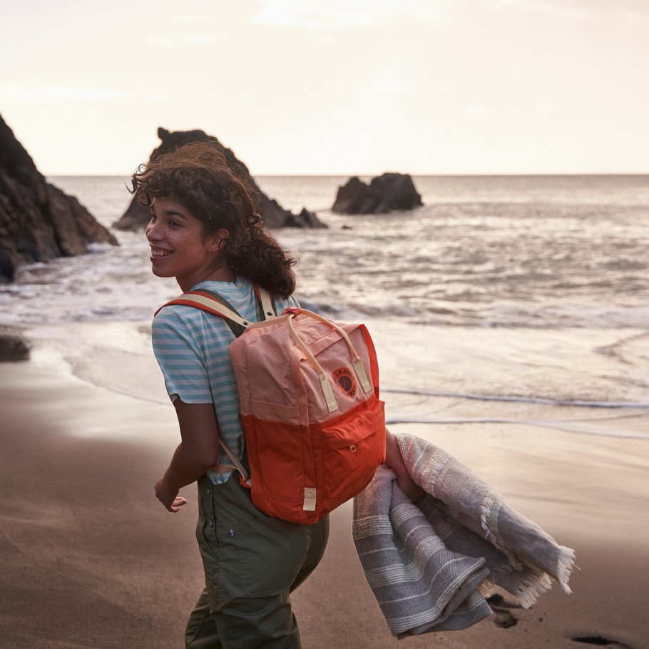 Kånken Art is what you get when you invite artists to express their relationship with nature using the classic Kånken backpack as their canvas. This special edition has a unique design by Swedish colourist, designer and photographer Tekla Severin. Her combination of colours gives Kånken a sense of free air and vast landscapes, be it sea or land. In addition to the spacious main compartment it has a padded pocket for a laptop computer, the shoulder straps are padded and there is a removable seat pad. Part of Fjällräven's Arctic Fox initiative, where part of sales go to environment and climate projects. Fits a 15" laptop, maximum measurements 36 x 26 x 3 cm.