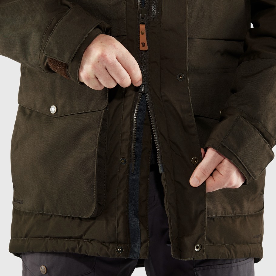 Lang, Slitesterk Vinterparkas For Skiftende Vintre Når Temperaturene Svinger Mellom Over Frysepunktet Med Sludd Til Under Frysepunktet Med Snø. Slitesterk Supreme Microloft-polstring Gir Varme, Men Barents Parkas Har Mindre Polstring Enn Våre Varmeste Vinterjakker, Så Den Er Funksjonell Selv Når Temperaturen Er Rundt Null. Ytterstoffet Er G-1000 Original Med Forsterkninger I G-1000 Heavyduty Og En Hydratisk Membran Som Holder Vann Ute. Den Sjenerøse Hetten Har Avtakbar Syntetisk Pelskant For Ekstra Beskyttelse Mot Fallende Snø. Mange Lommer Gir Praktisk Oppbevaring, Som De Vertikale Brystlommene For Kart, Telefoner Eller Busskort, Og Belglommene Lavere Nede Som Har Plass Til Både Hansker Og Frosne Hender. Det Er Også En Skjult Napoleonlomme Og To Innerlommer. Snøring I Falden Og Lang Toveis Glidelås Med Beskyttelsesklaff Og Trykknapper. Ermemansjetter Kan Justeres Med Borrelås. Det Klassiske Snittet Og De Robuste Materialene Gjør At Barents-parkasen Passer Til Både Hverdagsbruk Og Friluftsliv - Uten å Måtte Bekymre Deg For å Bli Våt.