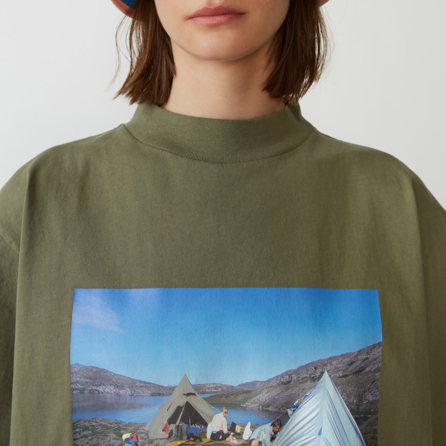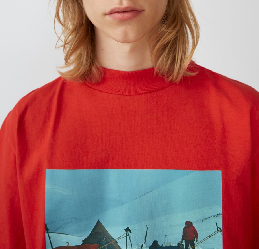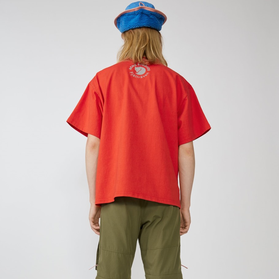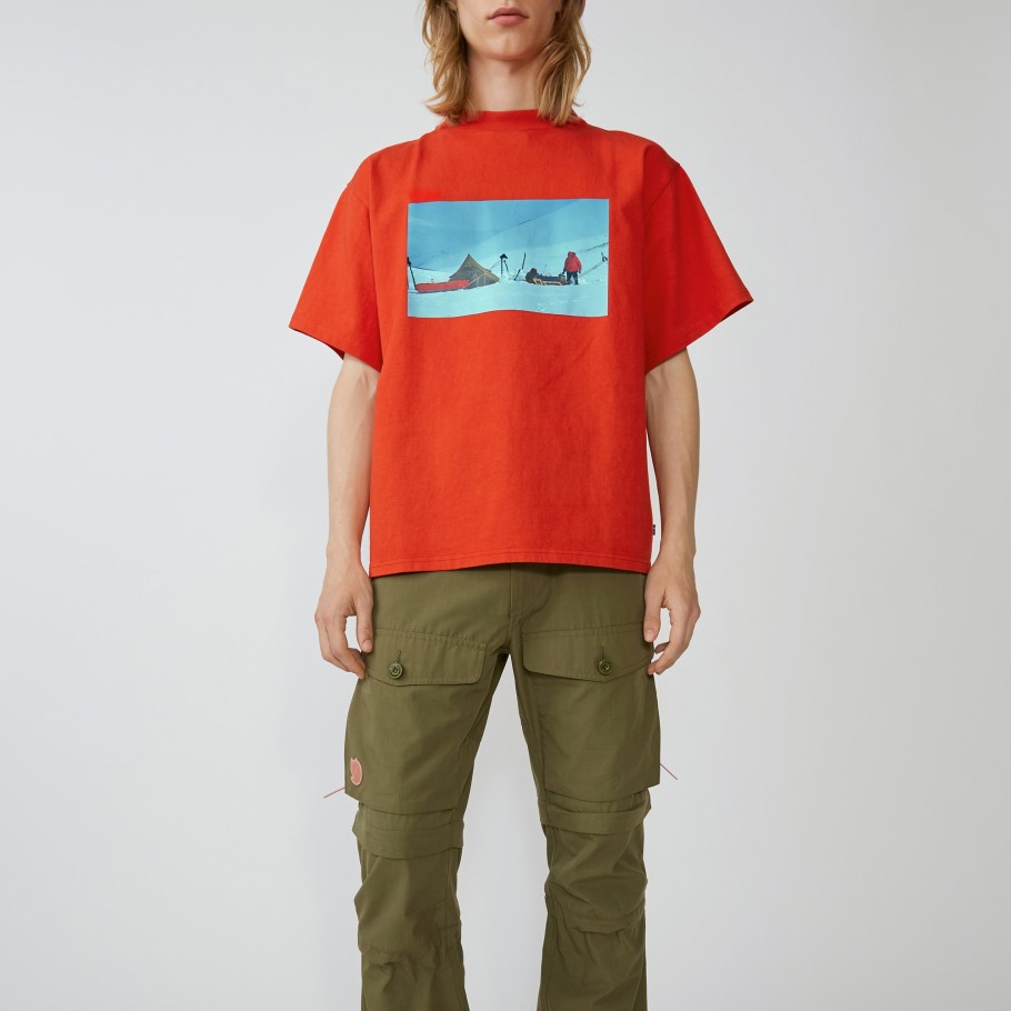 Denne Enkle, Løstsittende T-skjorten Er Laget Av Organisk Bomull, Som Krever Færre Kjemikalier Og Plantevernmidler For å Produsere Og Oppmuntrer Til Større Lokalt Biologisk Mangfold. Den Er Trykt Med Et Arkivbilde Fra Den Svenske Fotografen Claes Grundsten, Og Acne Studios Fjällräven-samarbeidsmanifestet Er Trykt På Innsiden. Et Reflekterende Logotrykk Er På Baksiden Av Nakken.