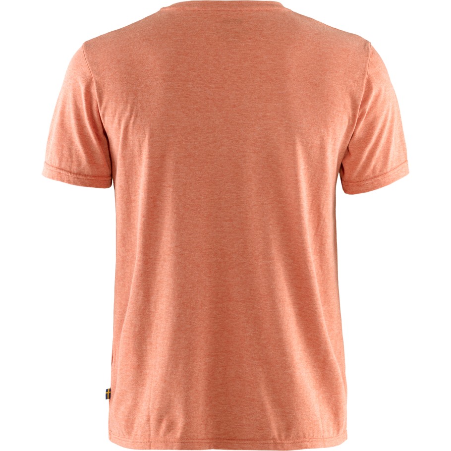 Kortermet T-skjorte I Bærekraftig Jerseystrikk Som Kombinerer Mykheten Til økologisk Bomull Med Funksjonaliteten Og Holdbarheten Til Resirkulert Polyester. Transporterer Bort Fuktighet Og Tørker Raskt, Noe Som Gjør Den Ekstra Komfortabel I Varmt Klima. Rund Hals Og Trykt Med Fjällräven-logoen Foran.