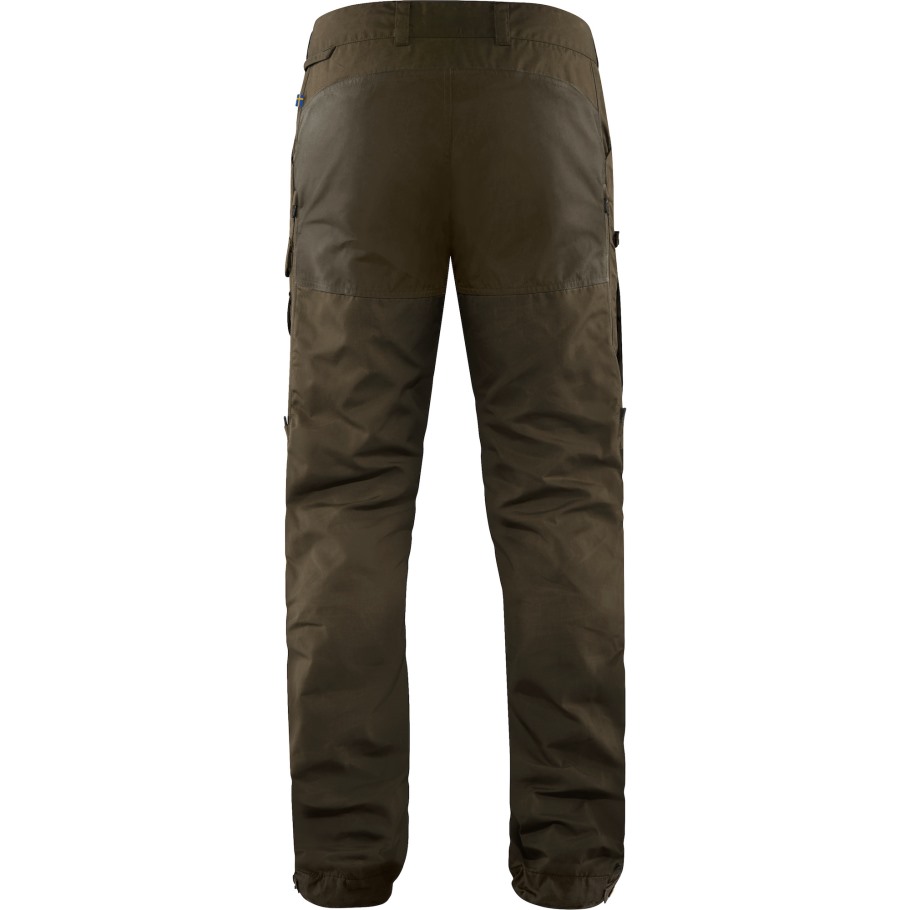 Durable trekking trousers with technical features, made from wind and water resistant G-1000 Eco. The model is based on our best-selling Vidda Pro but has improved ventilation options and a new, slightly slimmer fit that still has great freedom of movement. The buttoned strap adjustments at the leg endings can be removed and there are numerous practical pockets and details - such as a knife pocket on the right-hand leg and a loop for an axe on the side of the waist. NOTE: this model has a longer leg length (2"/5cm longer than regular length). Also available in regular leg length (artn. no 81160R) and with 30"/76cm inseam length for all sizes (art.no. 86224).